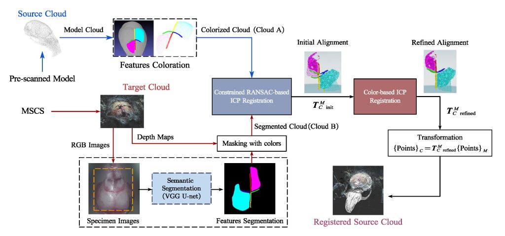 Moreover, microsurgery often involves delicate physiological tissues with fragile and intricate anatomical structures. Relying solely on a microscope’s top-down view is insufficient, especially when surgical tools block the view. Achieving greater surgical precision requires integrating preoperative medical imaging with intraoperative surface data to enhance visualization. This provides surgeons with additional information to track surgical progress and assess the condition of tissues.